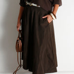 Deze stijlvolle rok heeft een A-lijn en is eenvoudig te combineren. De rok kan op diverse manieren gestyled worden. Bijvoorbeeld met een trui in dezelfde kleur.