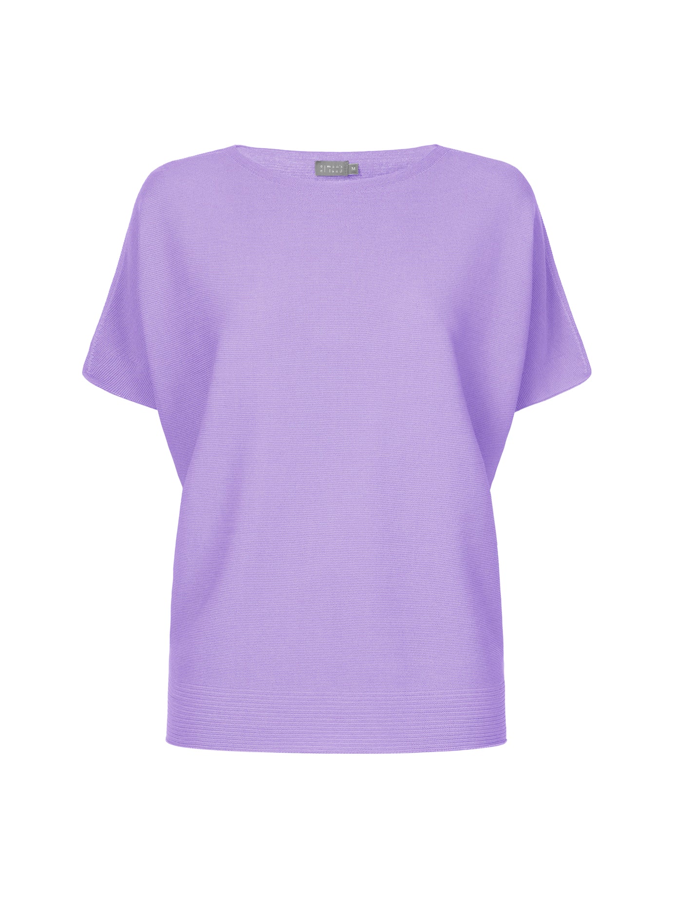 Deze fijngebreide top in een frisse lila tint geeft je outfit direct een zachte, vrouwelijke uitstraling. Het model heeft een ronde hals en korte, iets wijdere mouwen die zorgen voor een moderne, relaxte fit.