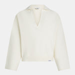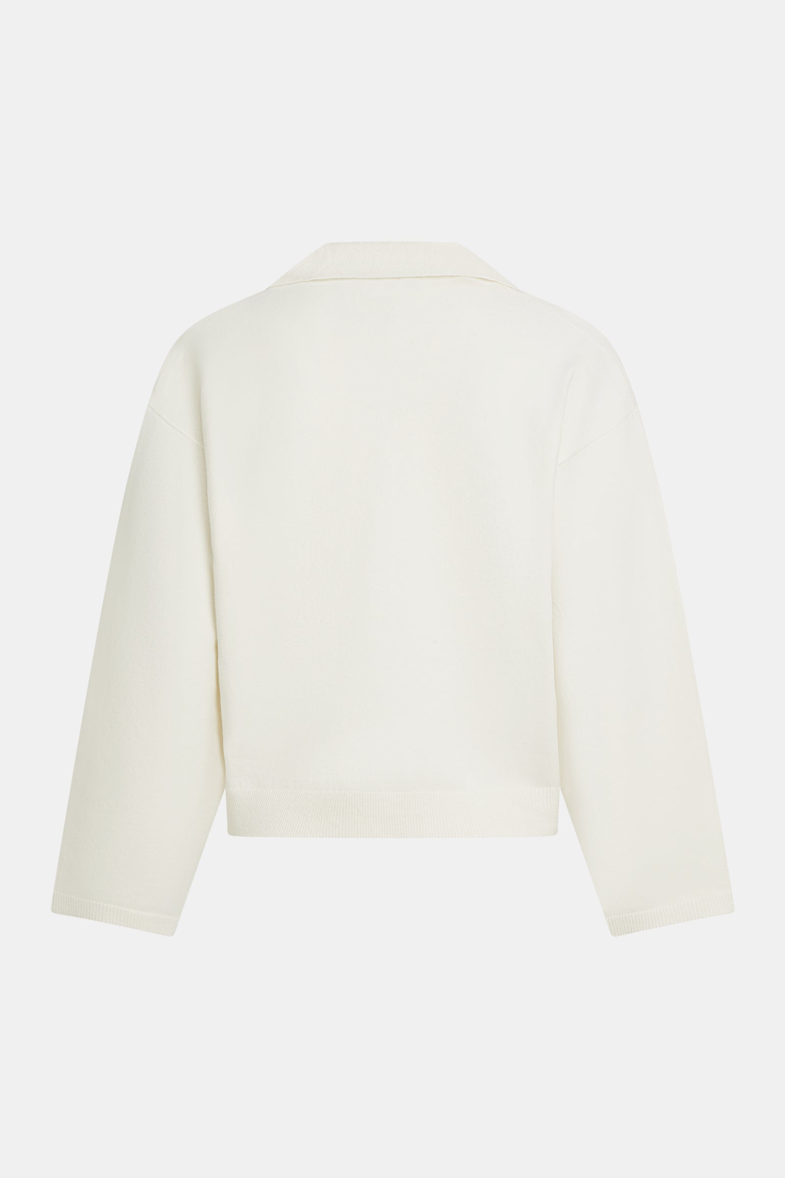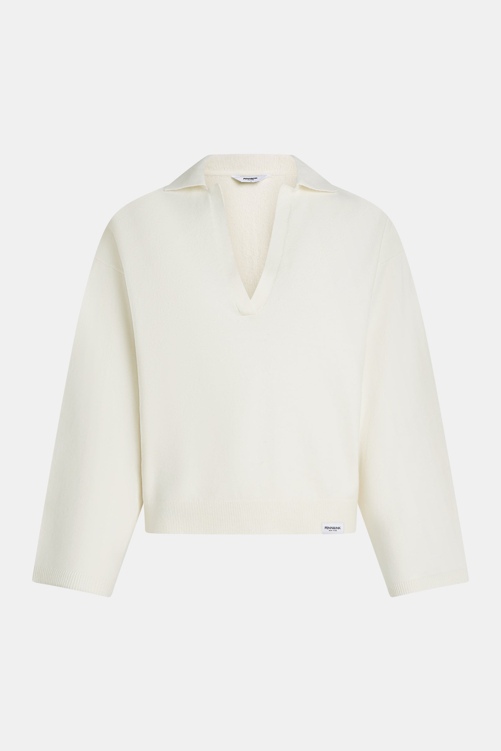 Deze zachte trui van Penn & Ink heeft een opstaande kraag die doorloopt in een diepe V-hals. De trui in de kleur ecru past mooi bij de tinten van dit seizoen. Denk hierbij aan bruintinten of bordeaux.