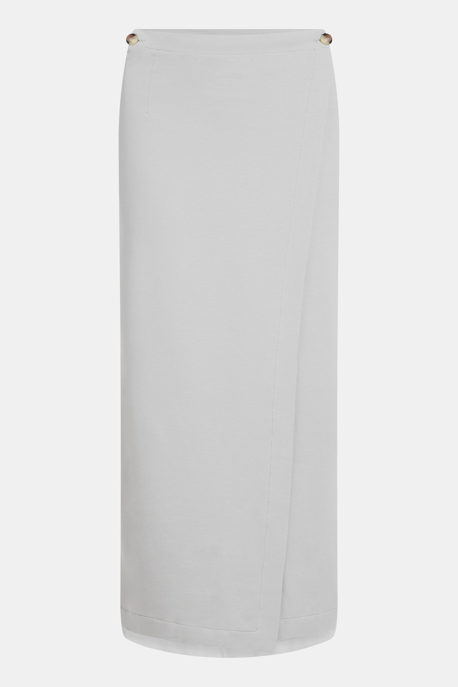 Deze lange rok in de kleur flanel is de perfecte combinatie van comfort en minimalistische elegantie. Het rechte, soepelvallende model zorgt voor een slank silhouet, terwijl de zachte, stretchy jerseykwaliteit heerlijk draagt gedurende de hele dag.