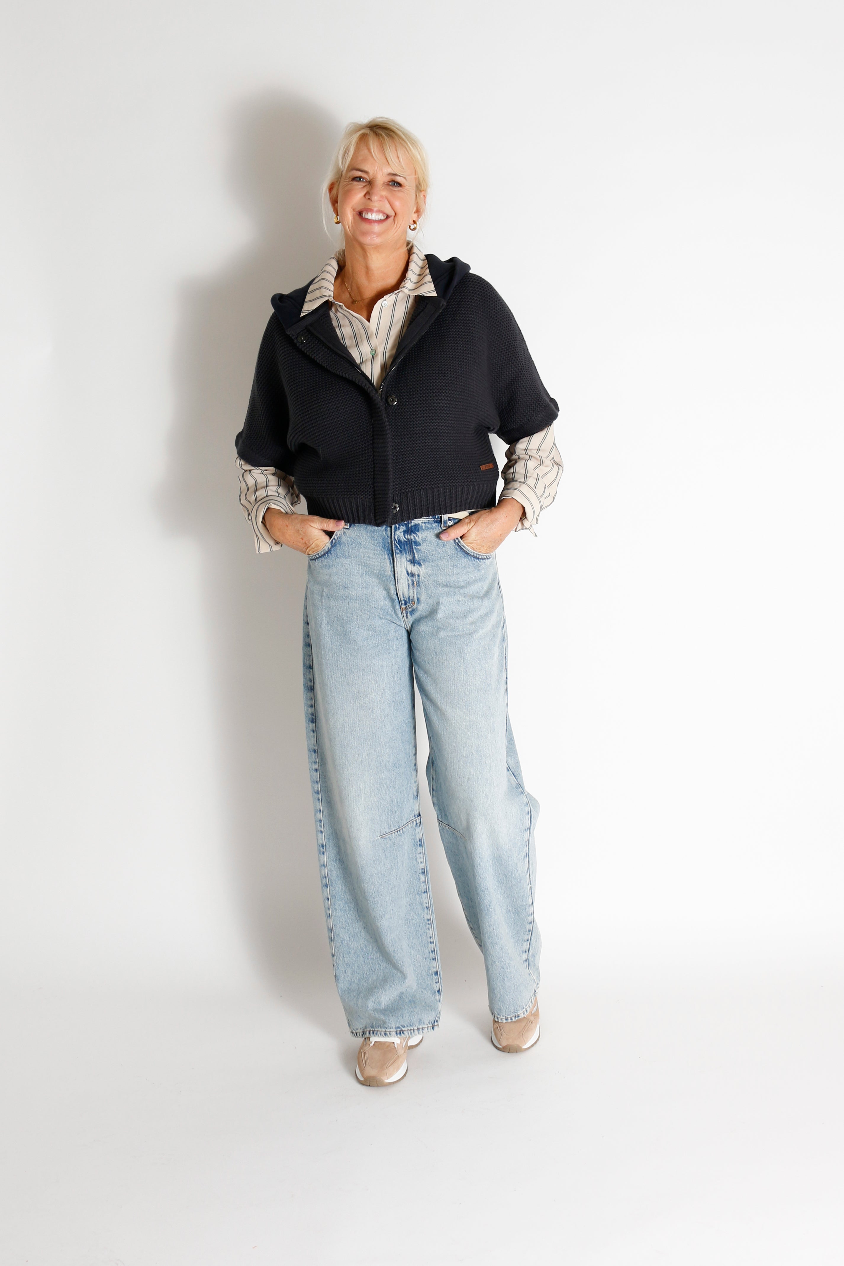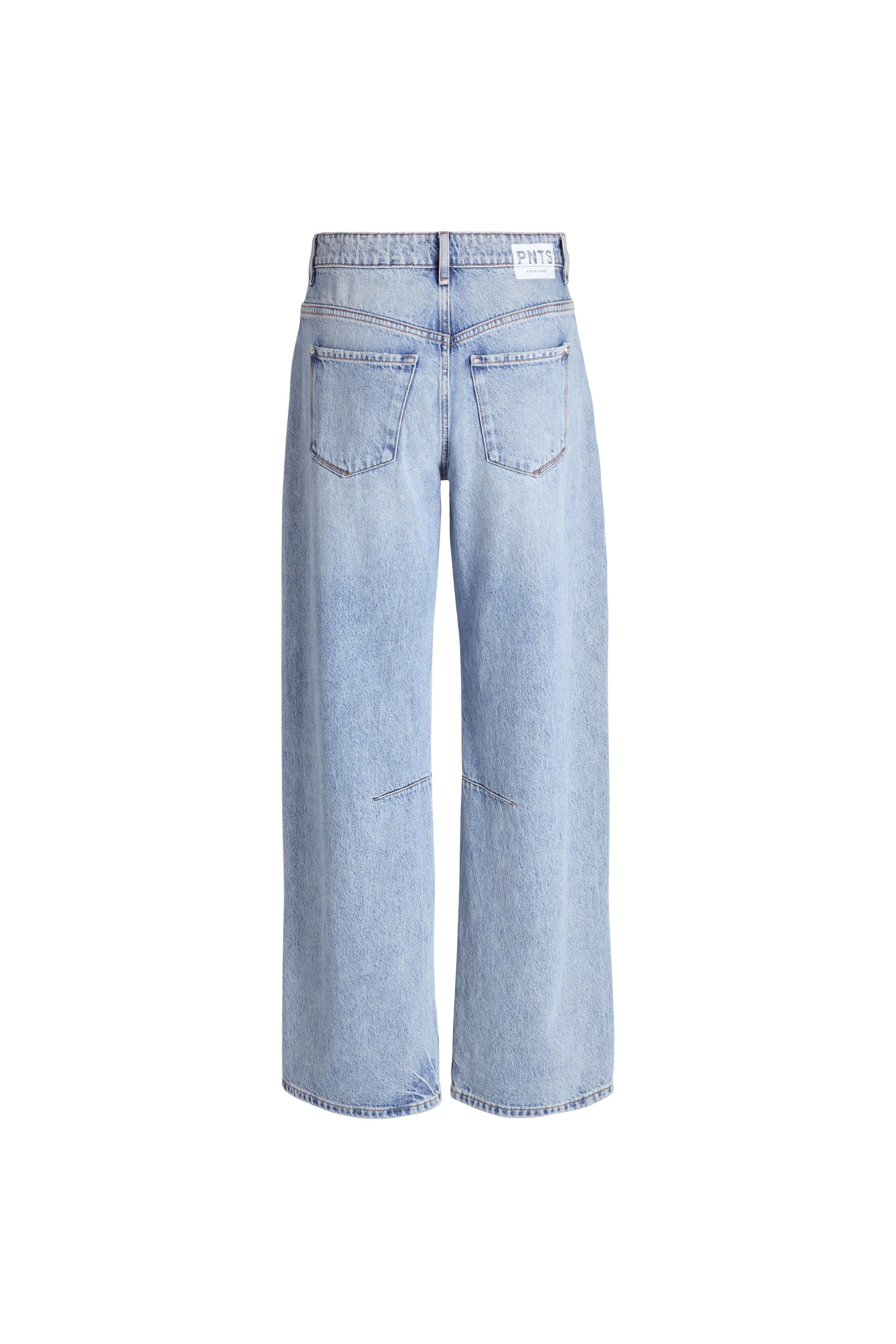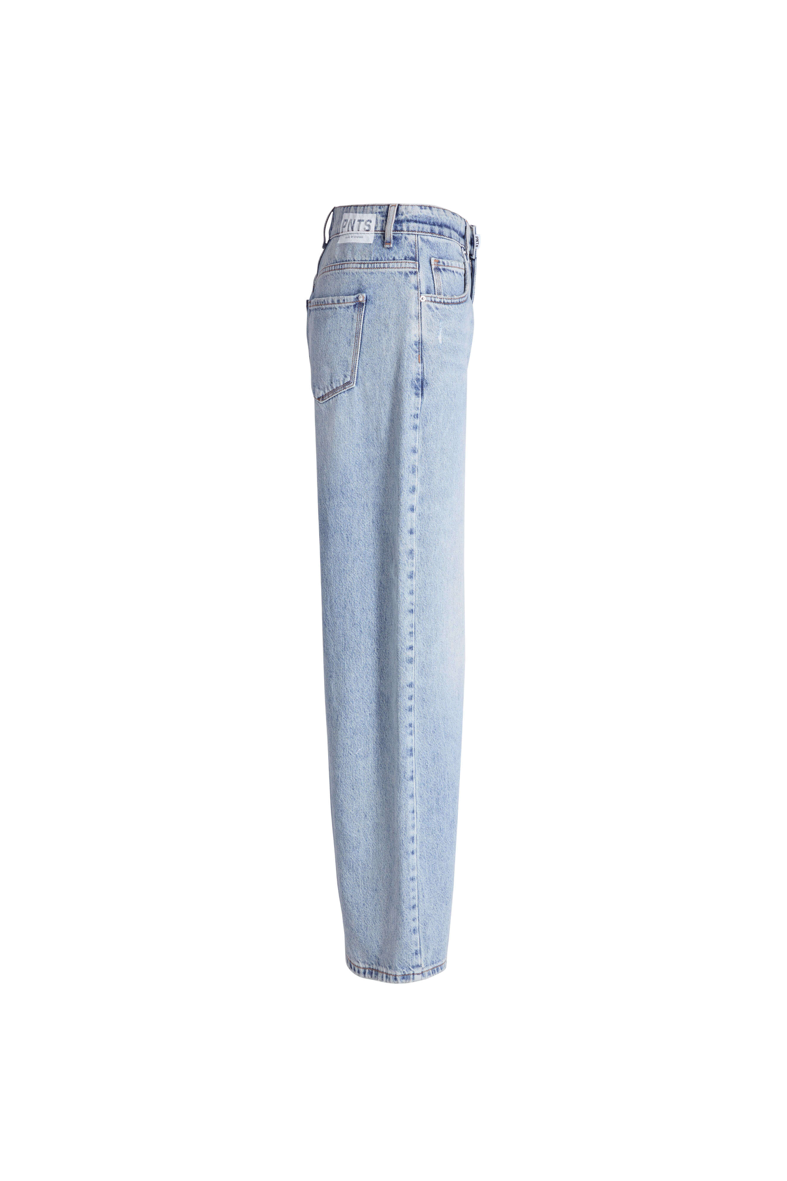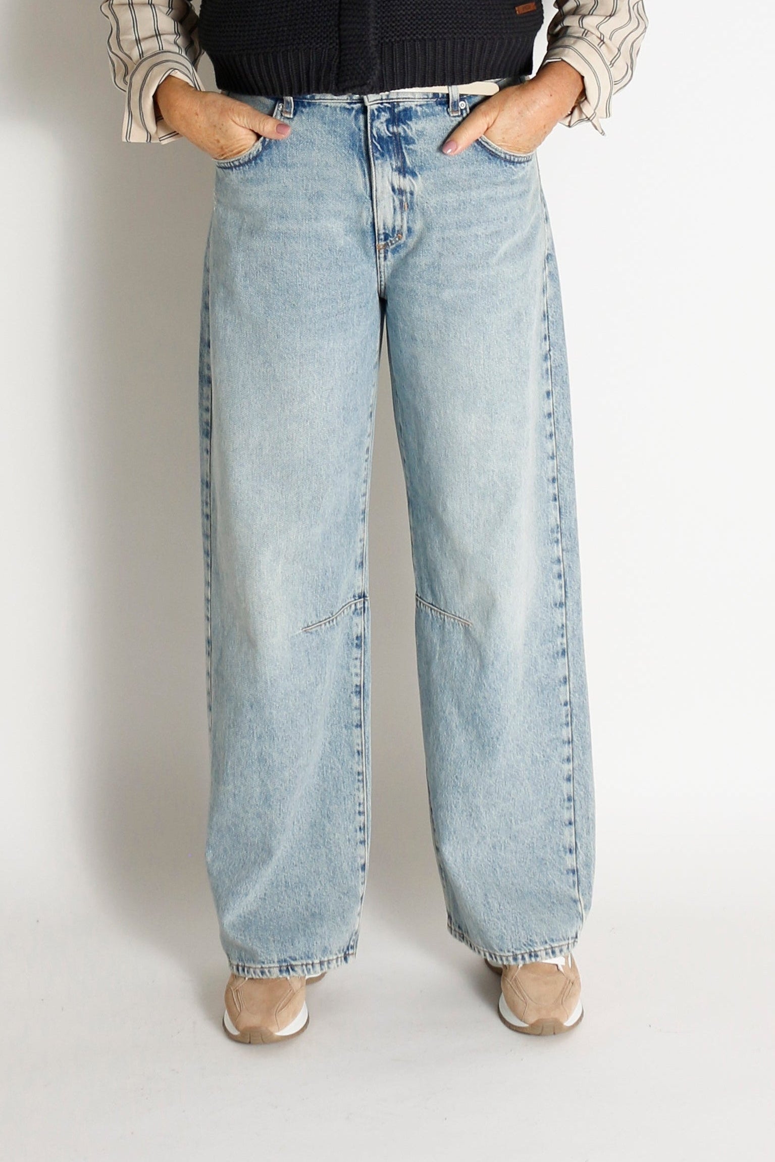 De Denim 26_THE LOOSE is uitgevoerd in een authentieke Rigid Light vintage denimkwaliteit. De jeans heeft een lichte, blauwe wassing met lichtere used-effecten en ingewerkte buffies. Het model heeft een zeer losse pasvorm met een hogere, comfortabele taille en een wijde pijp. De broek heeft een lange beenlengte en een coupenaad bij de knie.