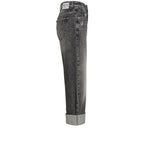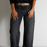 De Denim 26_THE LOOSE is gemaakt van authentiek, stevig biologisch denim. Hij is verkrijgbaar in middenblauwe en donkergrijze wassingen met lichte vuiligheid, lichtere slijtage en geïntegreerde polijsting. De torso heeft een zeer losse pasvorm met wijdere pijpen en een hogere, lossere taille. Een omslag in de taille zorgt voor een iets kortere pijplengte. Deze stijl kan ook lang gedragen worden.