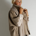 Avy is een luxe wol blend mantel van Studio AR. Hij is losvallend en het is een veelzijdige toeveoging aan je garderobe. De neutrale kleur maakt hem extra veelzijdig.
