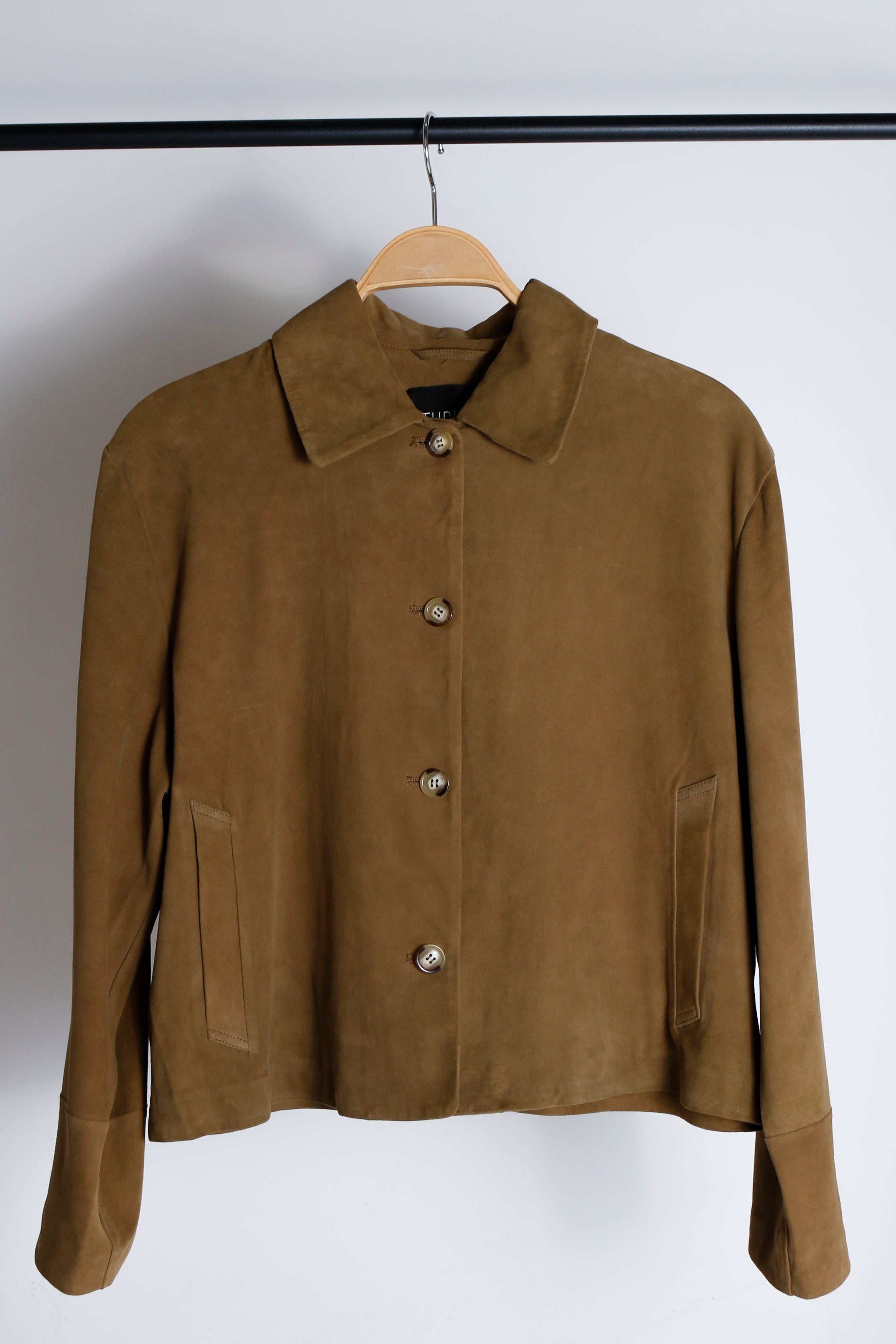 Verhoog je garderobe met dit tijdloze suède leren jack. Ontworpen met een licht rechte pasvorm voor een gestructureerde maar moeiteloze uitstraling, en voorzien van klassieke hoornknopen die een verfijnde touch toevoegen. Perfect om te layeren: dit veelzijdige item brengt ingetogen luxe naar elke outfit.