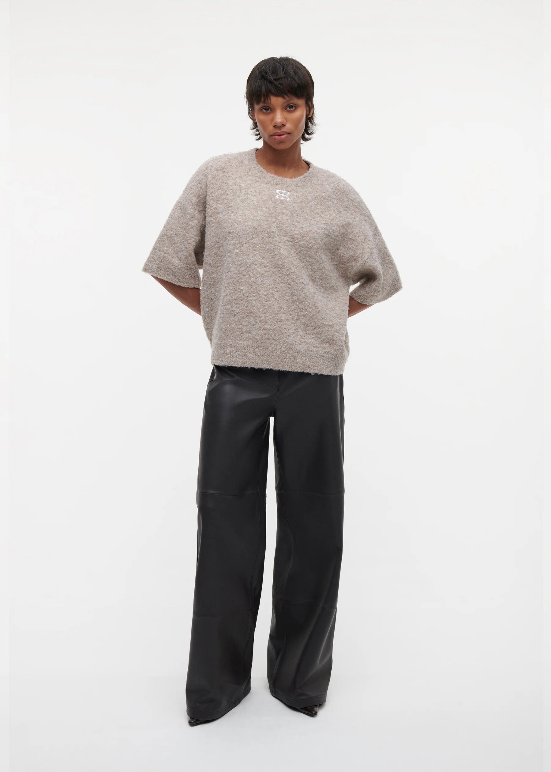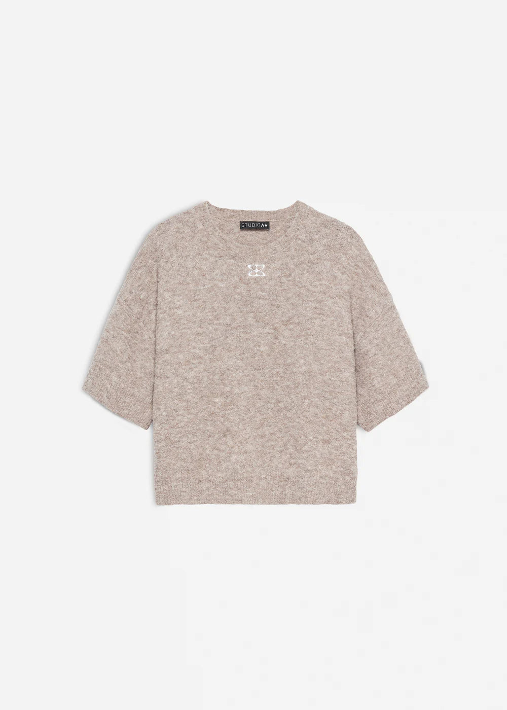 Trui Jessica van Studio AR is een camelkleurige trui met logo. De bouclé trui is een perfecte trui voor het najaar. Dankzij de comfy fit krijgt je look een casual chique uitstraling.