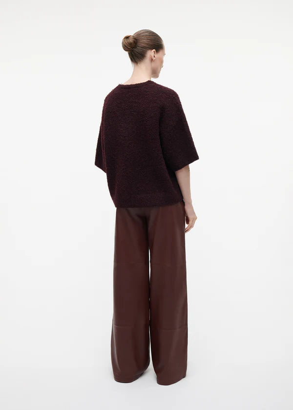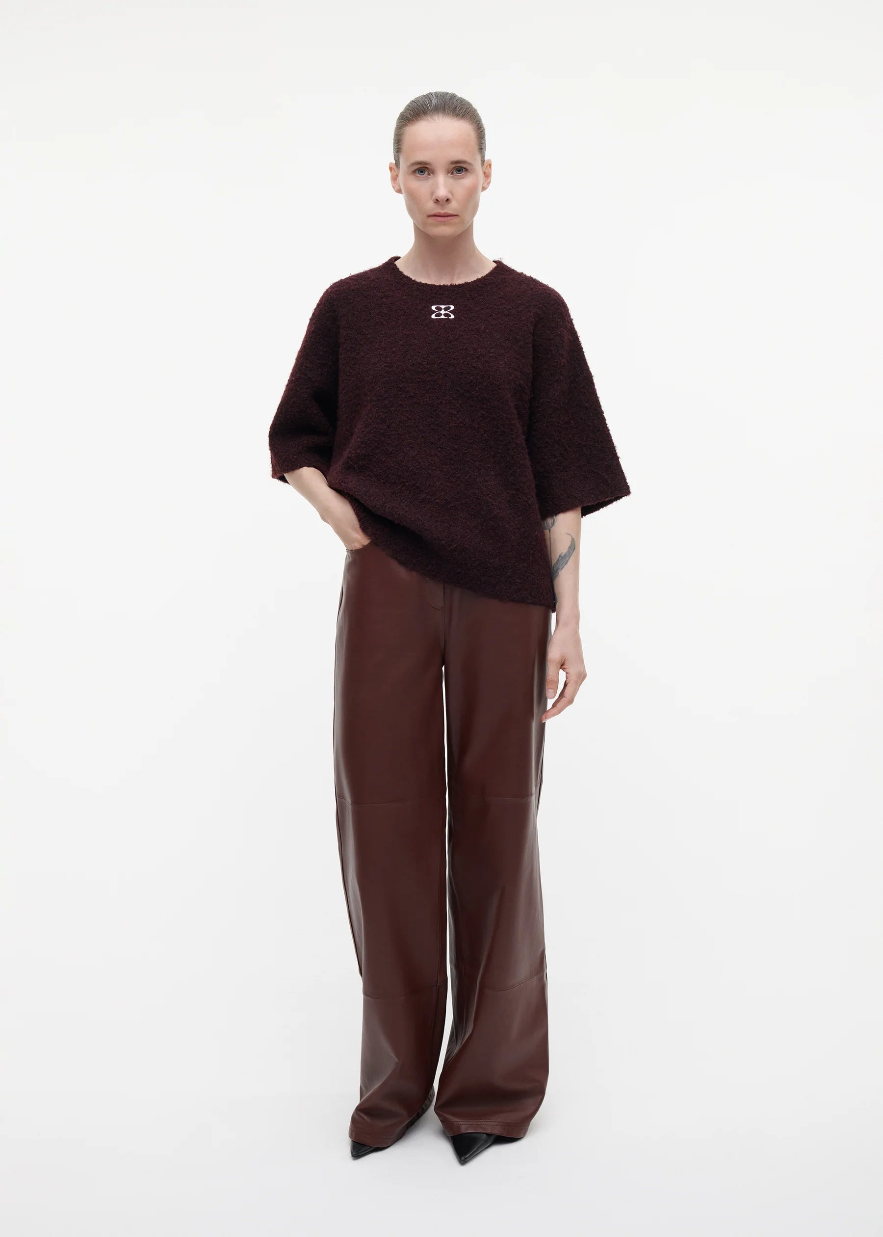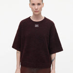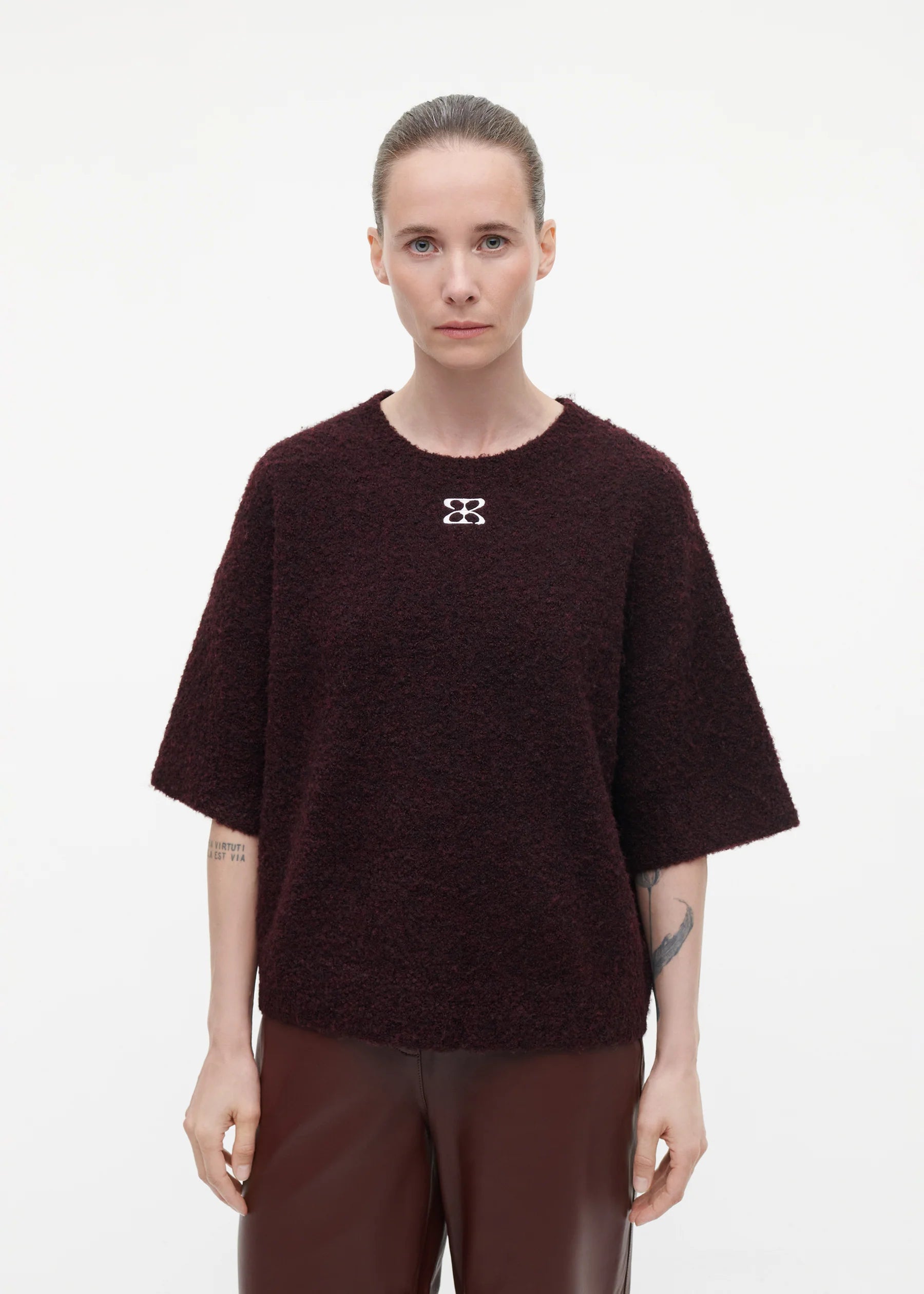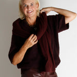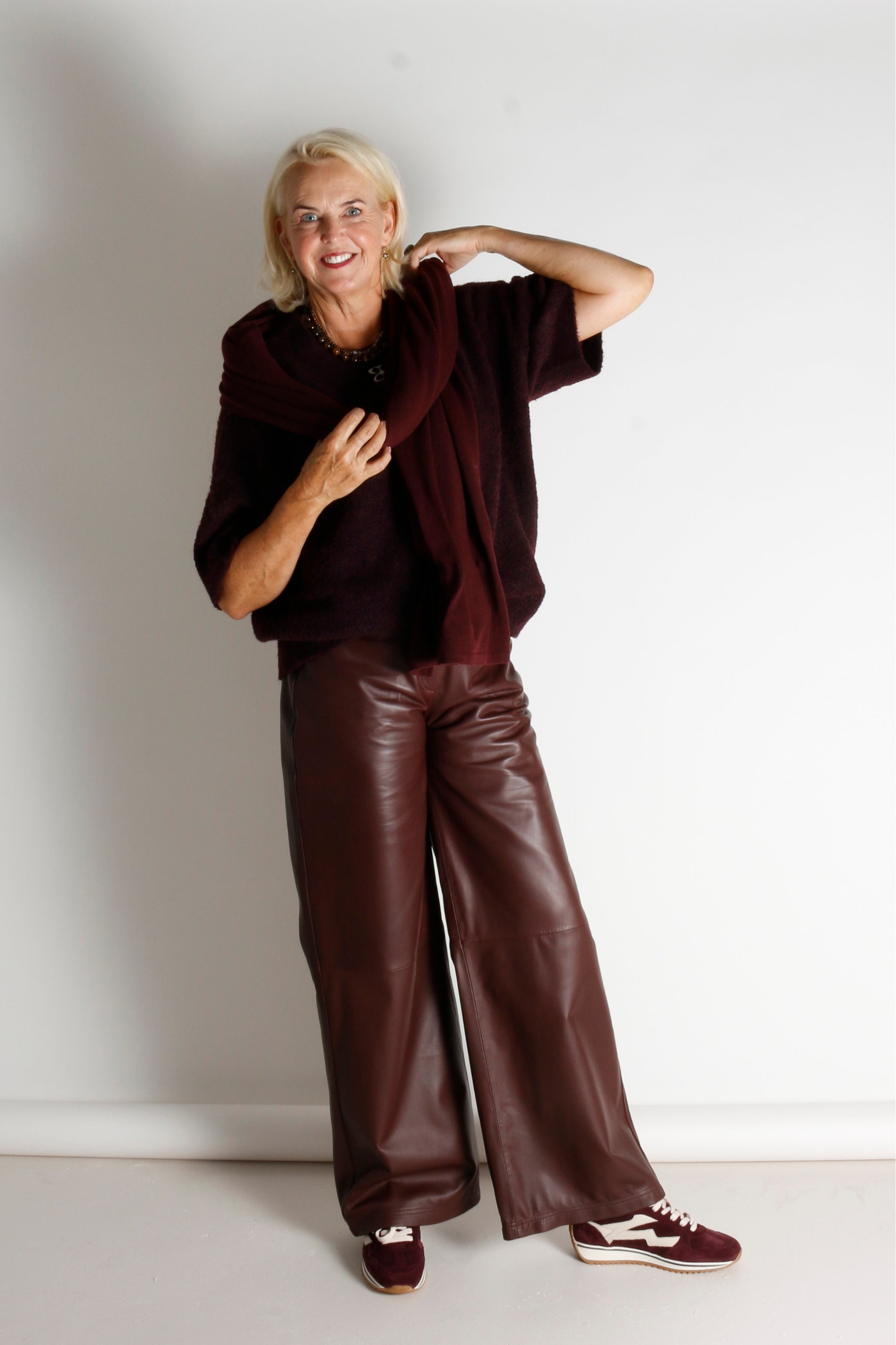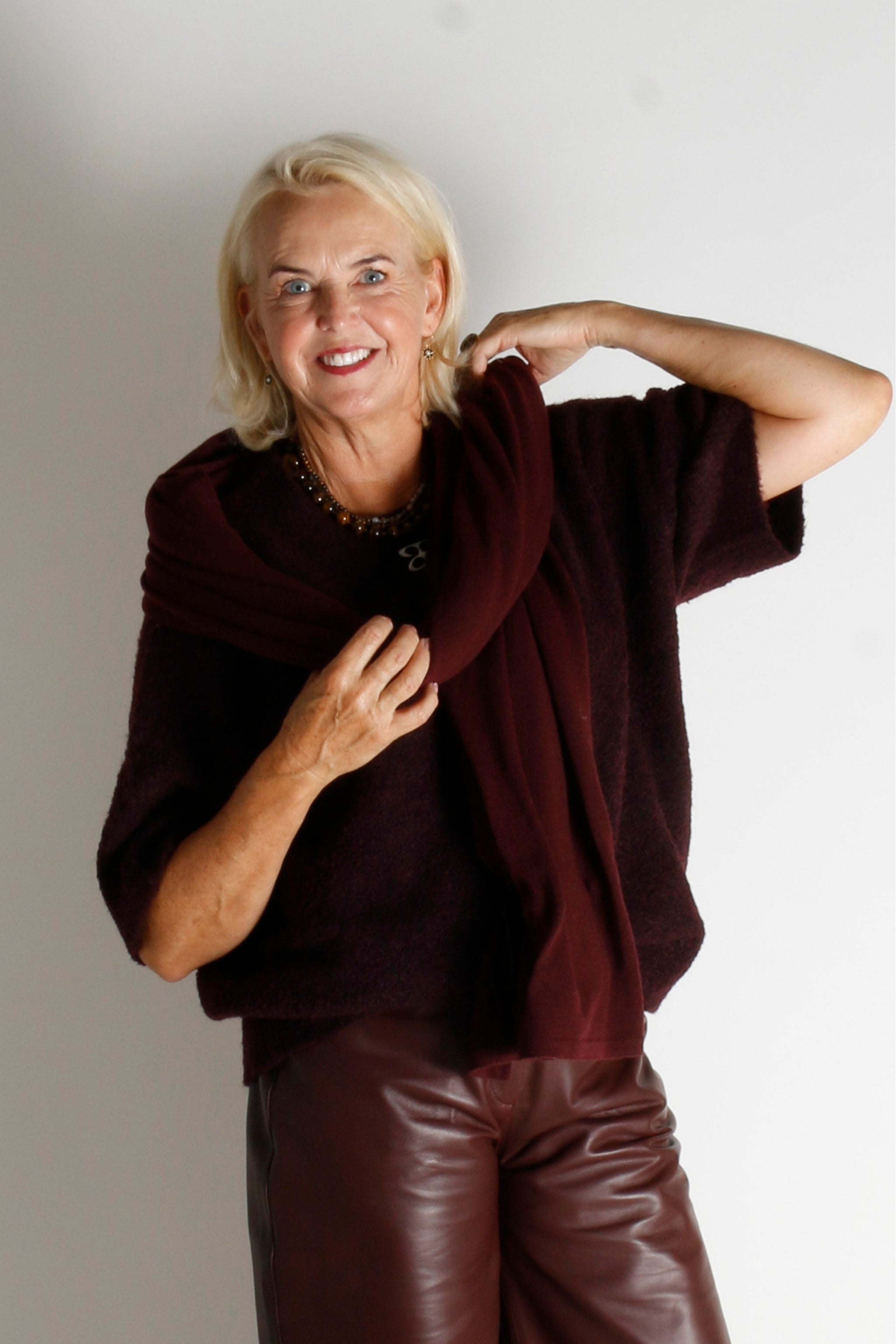 Trui Jessica van Studio AR is een bordeaux trui met logo. De bouclé trui is een perfecte trui voor het najaar. Dankzij de comfy fit krijgt je look een casual chique uitstraling.