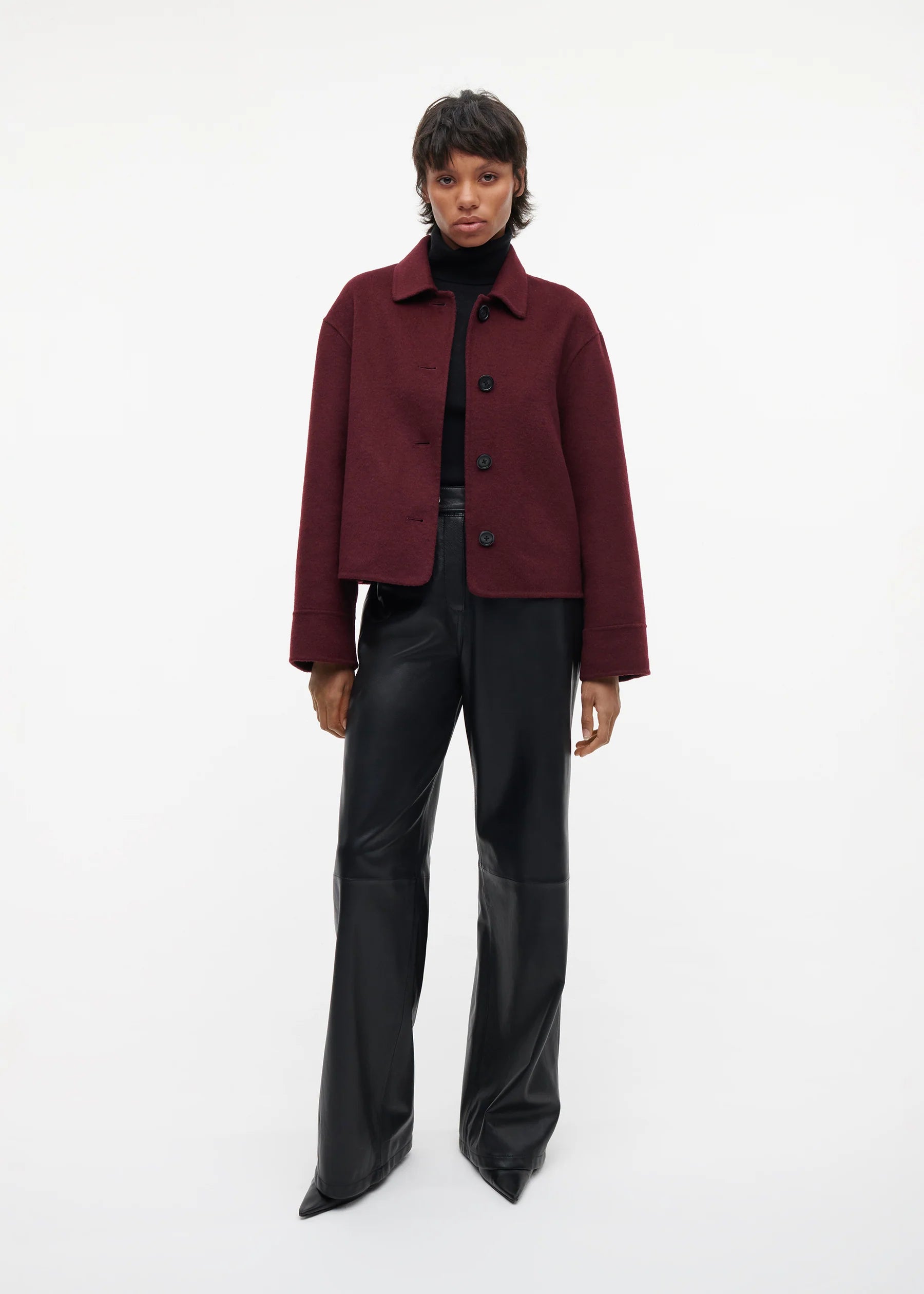 Dit chique korte wollen jasje is ontworpen voor zowel stijl als comfort. Met zijn strakke, rechte pasvorm biedt hij een moderne maar tijdloze look. De hoogwaardige wollen stof biedt warmte en behoudt een strakke uitstraling, waardoor hij perfect is om over elke outfit te dragen. Het minimalistische ontwerp en de veelzijdige snit maken het een onmisbaar kledingstuk voor een verzorgde, alledaagse look.