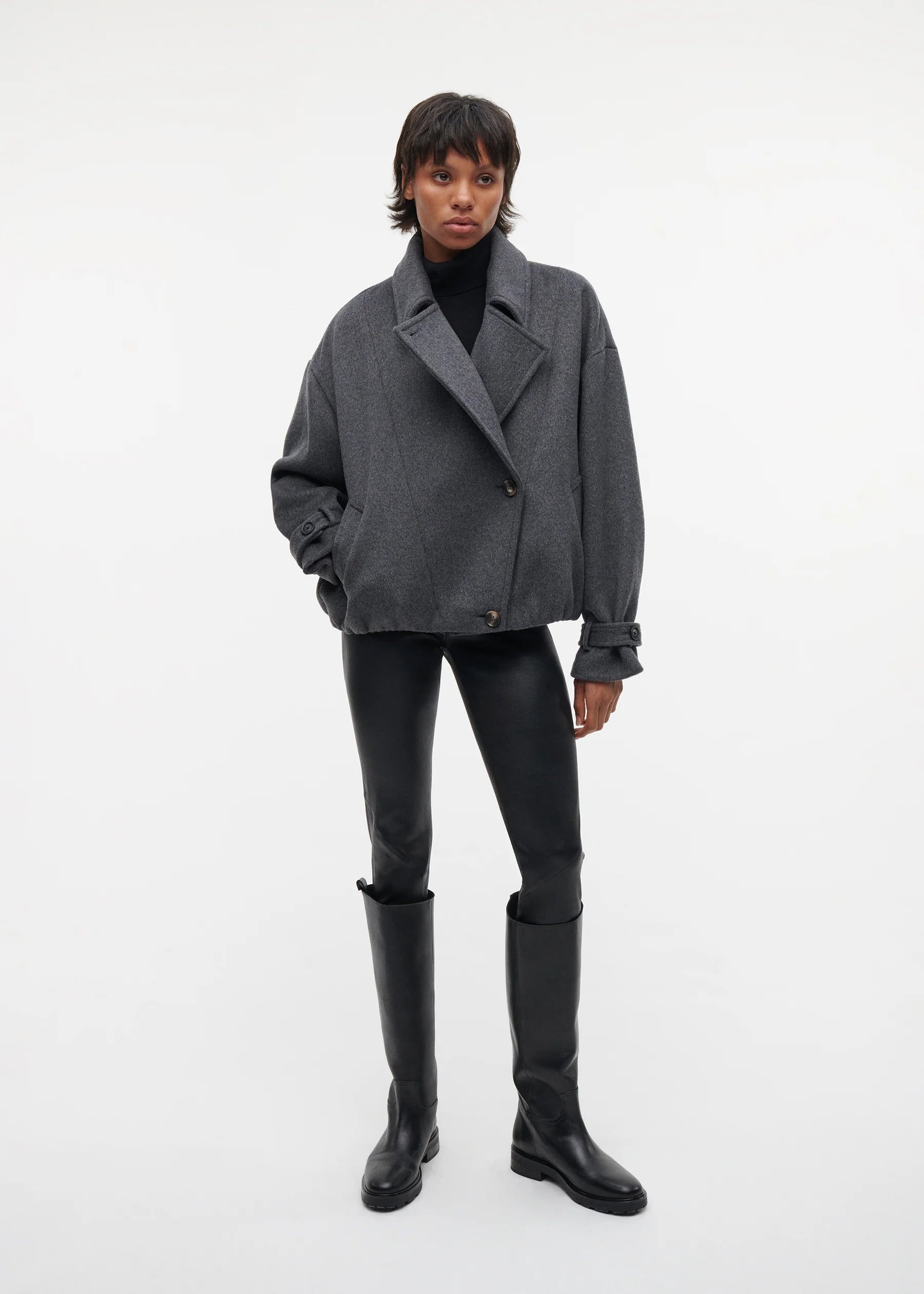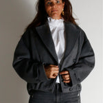 Jas Silas is een wollen bomberjack met reverskraag. Het is een musthave voor het najaar en is zowel stoer als elegant. Hij heeft verlaagde mouwen en twee steekzakken aan de voorkant. De elastische tailleband geeft een speels effect.