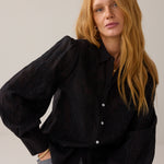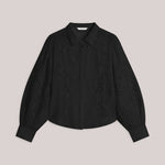 Deze zwarte blouse van Summum is verfijnd en vrouwelijk dankzij de subtiele embroiderystiksels. De licht getailleerde pasvorm en elegante pofmouwen geven een stijlvolle uitstraling, terwijl de combinatie van viscose en katoen zorgt voor een luchtige, licht transparante look met een comfortabele draagbaarheid.