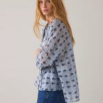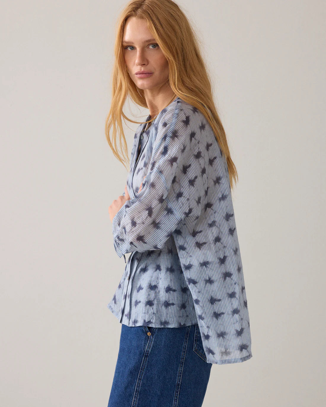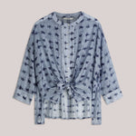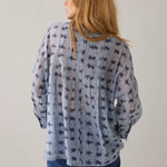 Wear-your-way overhemdblouse van licht transparante stof met tie-dye streepprint en een verlaagde schouderinzet. De korte knoopsluiting en hoge splitten maken het mogelijk om de blouse op verschillende manieren te dragen: losvallend als blouse voor een relaxte look of aan de voorkant gestrikt voor een feminine shape.