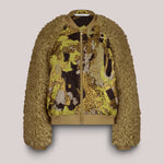 Deze jacquard bomber heeft een opvallend patroon en teddy mouwen. Het model is licht gewatteerd en geschikt als tussenjas of voor binnen. Afgewerkt met een glanzende satijnen voering en zachte ribboorden.
