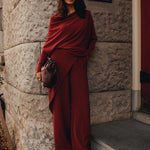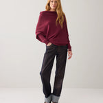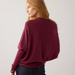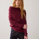 Sophisticated, zachte trui met een asymmetrisch ontwerp en een hele brede boothals. Het model heeft aangesloten, strakke mouwen en is rondgebreid zonder naden voor een gladde afwerking. Gemaakt van een soepele viscoseblend met subtiele ingebreide ribdetails.