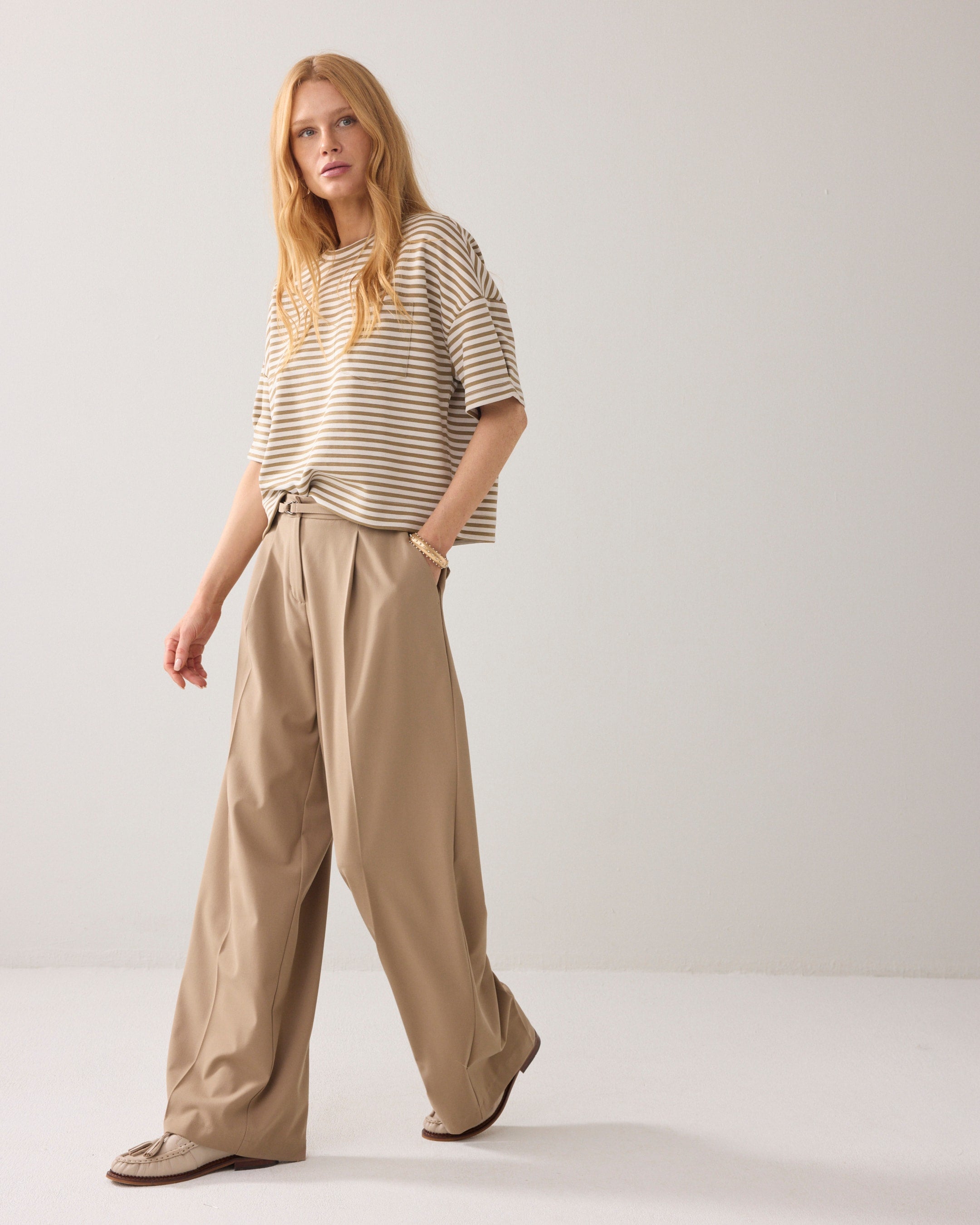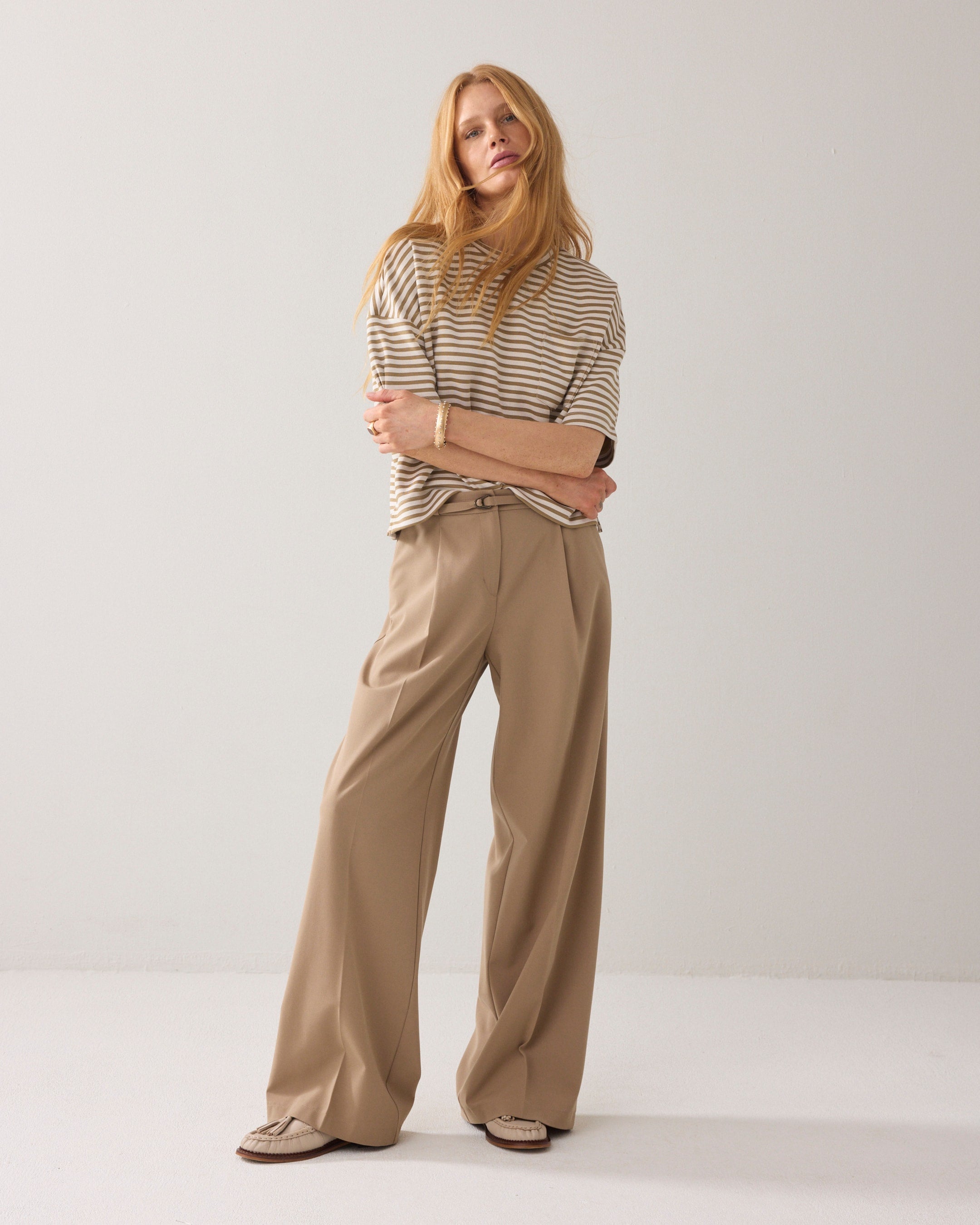 Deze elegante wide leg pantalon van Summum is de perfecte mix van comfort en stijl. De soepele stof en wijde pijpen zorgen voor een prachtige, vloeiende pasvorm die elke outfit direct een sophisticated uitstraling geeft.