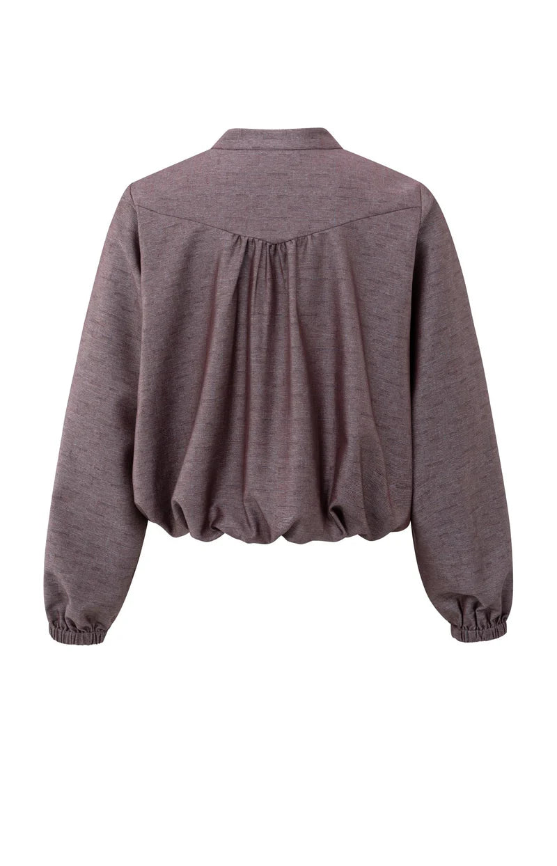 Dit blousejack is ontworpen in een speelse ballonvorm en heeft een opstaande kraag, lange mouwen met elastische boorden en een elastische zoom voor een vrouwelijke pasvorm. Gemaakt van een zachte, geweven stof met een subtiele structuur. De verfijnde plooien op de schouders zorgen voor extra volume. Het model is 173 cm en draagt maat 36.