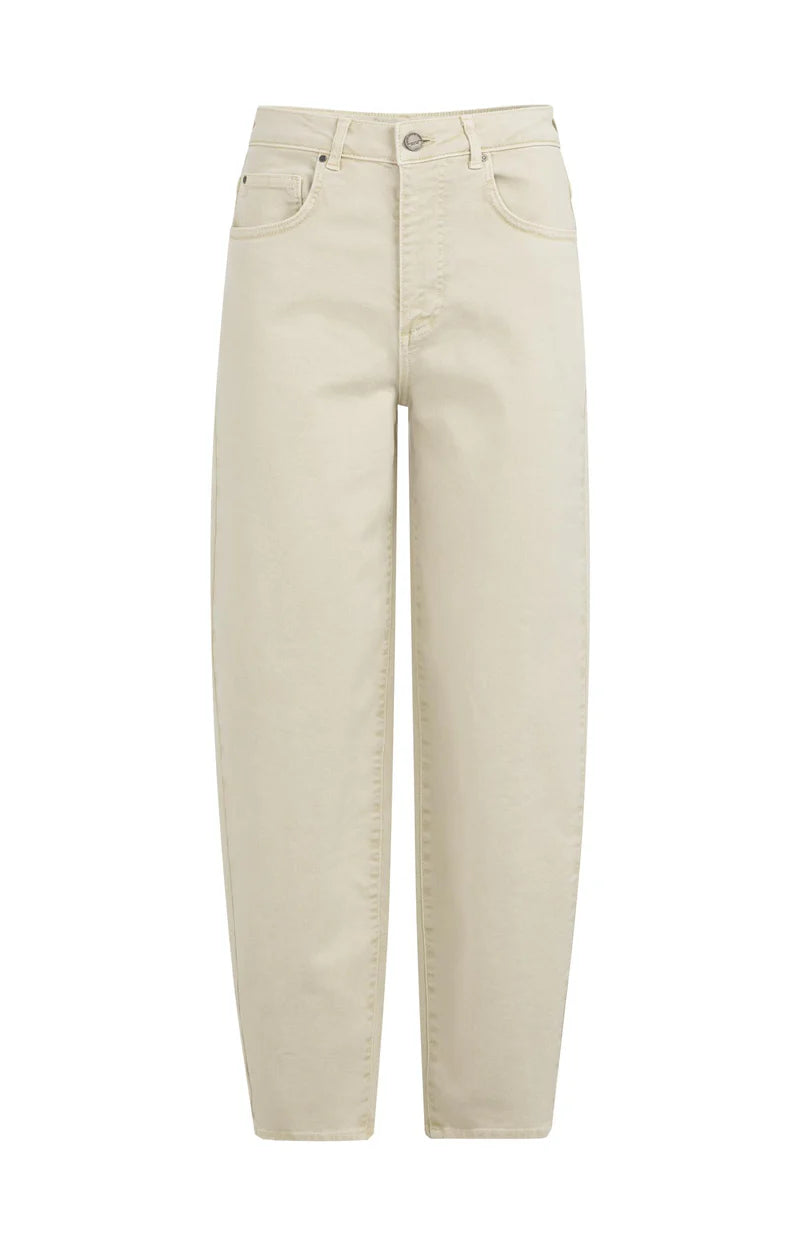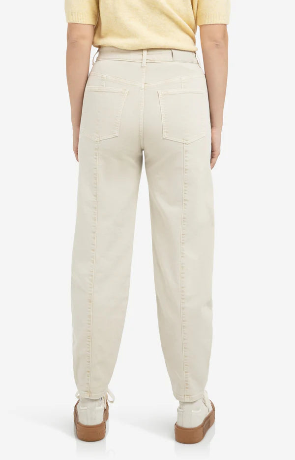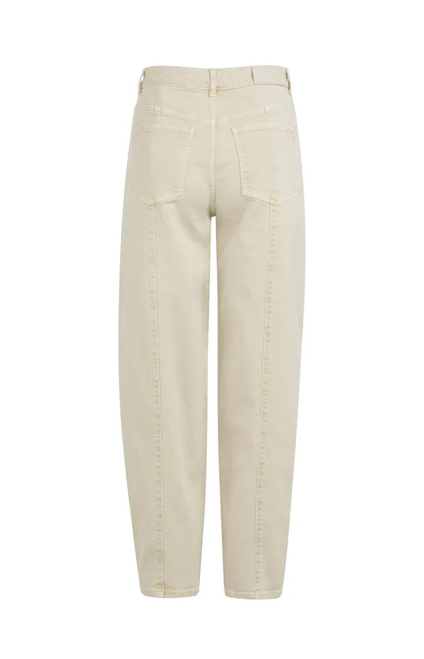 Deze jeans is uitgevoerd in een comfortabele denimkwaliteit en heeft een hoge taille en een losvallende barrel fit. De broek is voorzien van opvallende naden aan de achterkant, steekzakken voor en opgestikte achterzakken. De taps toelopende pijpen geven een eigentijdse look. Een stijlvol en casual item met een lichte wassing voor een zachte uitstraling. Het model is 178 cm en draagt maat 36.