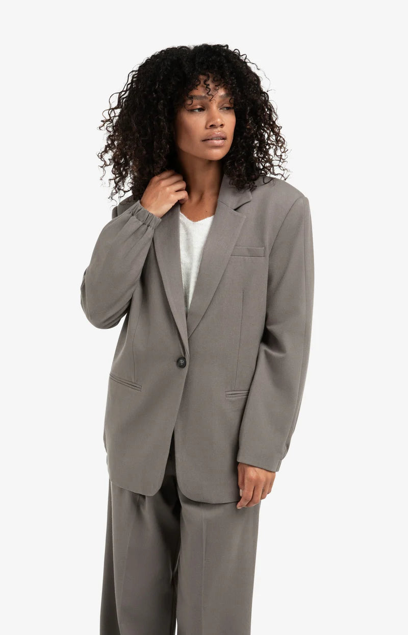 Deze stijlvolle blazer is gemaakt van een zachte, geweven stof en heeft een rechte, losvallende pasvorm. Het model is voorzien van lange mouwen met elastische boorden en een elastische zoom aan de achterkant. Afgewerkt met klassieke revers, een knoopsluiting en steekzakken voor een verfijnde look. Perfect voor een moderne, casual uitstraling. Het model is 173 cm en draagt maat 36.