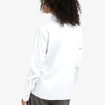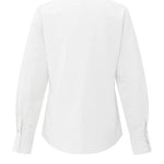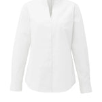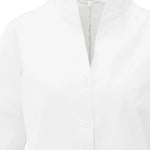 Deze elegante blouse is gemaakt van een stevige katoenmix en heeft een hoge opstaande kraag die overloopt in een diepe V-split. De lange mouwen zijn afgewerkt met klassieke manchetten. Dankzij de getailleerde pasvorm en cleane uitstraling is dit een tijdloos item voor zowel zakelijke als casual looks. Het model is 173 cm en draagt maat 36.