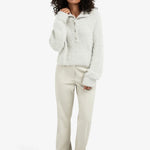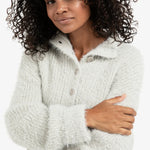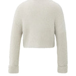 Deze zachte, fluffy trui heeft een moderne, korte pasvorm en een opstaande kraag met elegante knoopsluiting. De lange mouwen met omgeslagen boorden zorgen voor een nonchalante touch. Gebreid van een zachte, comfortabele stof die heerlijk zacht aanvoelt. Het model is 173 cm en draagt maat S.