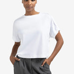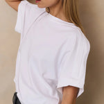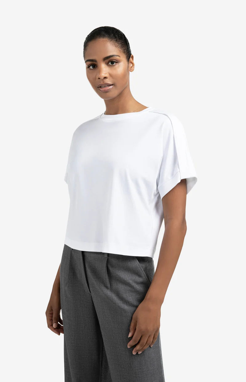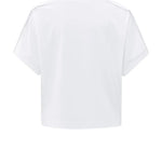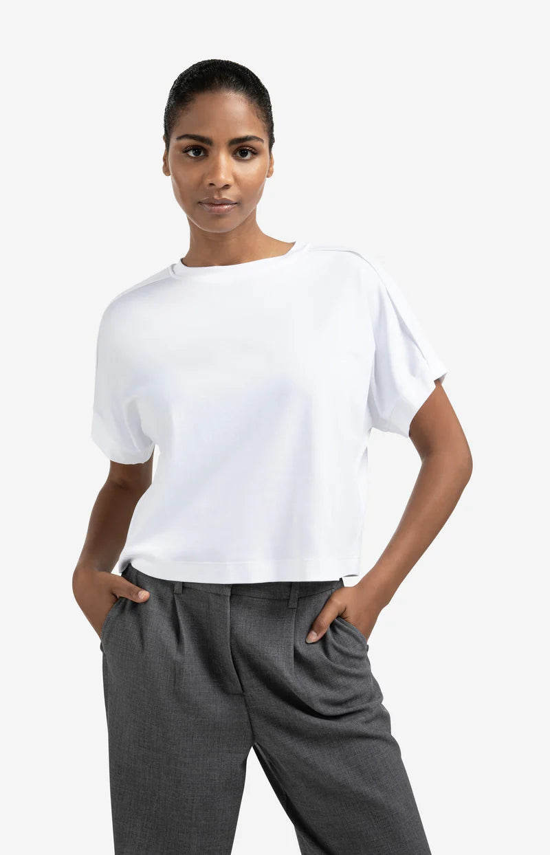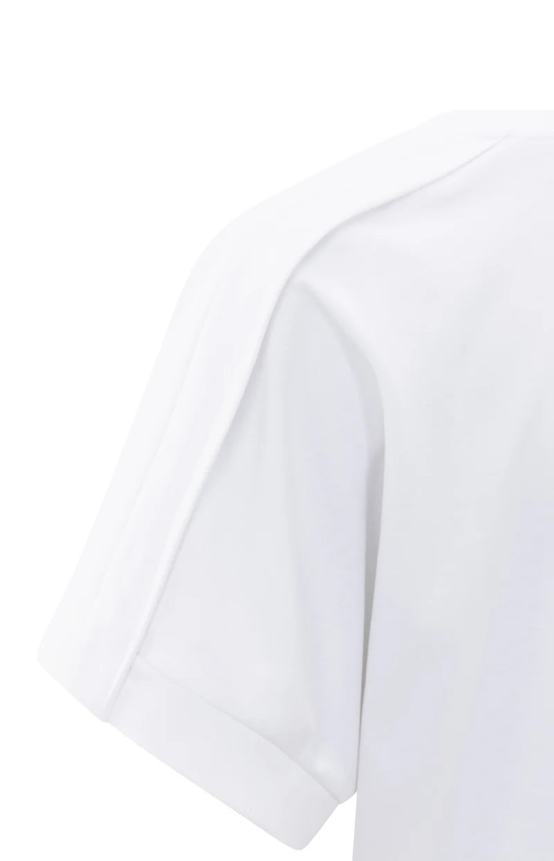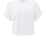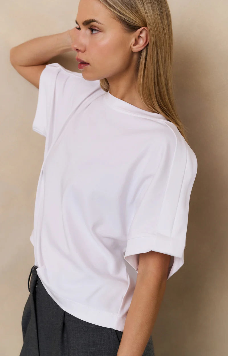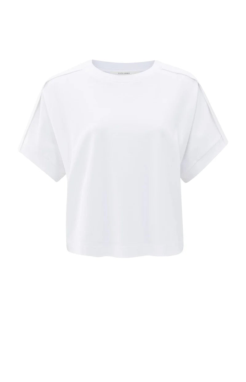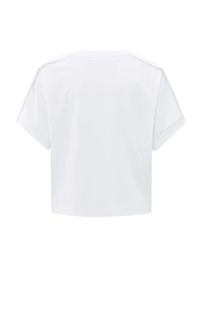 Deze comfortabele jersey top heeft een ronde hals en korte mouwen. De losse pasvorm wordt verfijnd door unieke vouwdetails op de schouders, wat zorgt voor een moderne twist. Gemaakt van een zachte stretchstof die prettig aanvoelt op de huid. Een veelzijdige basic met een subtiel ontwerpdetail voor een casual, stijlvolle look.