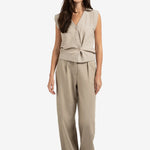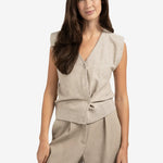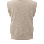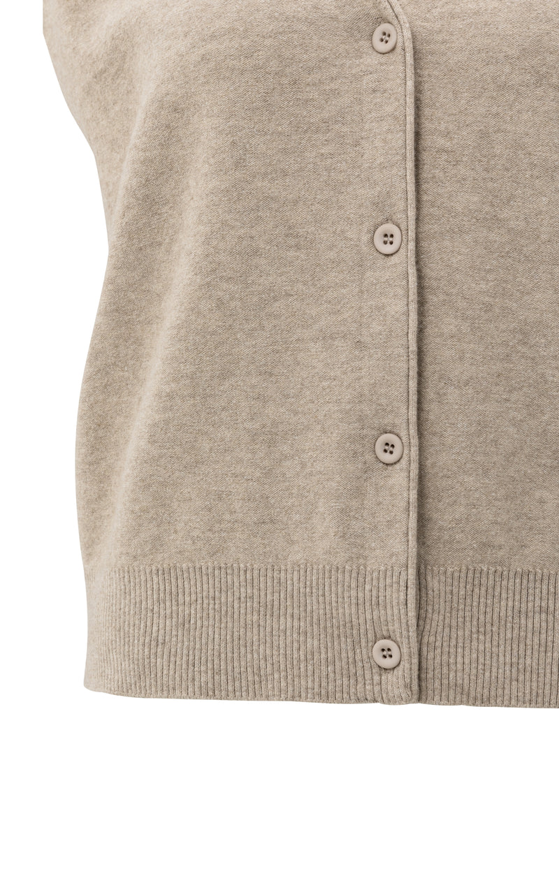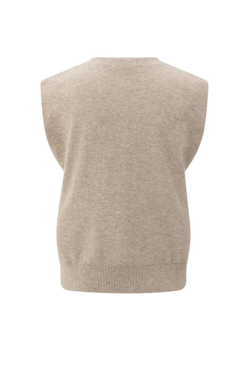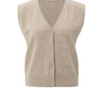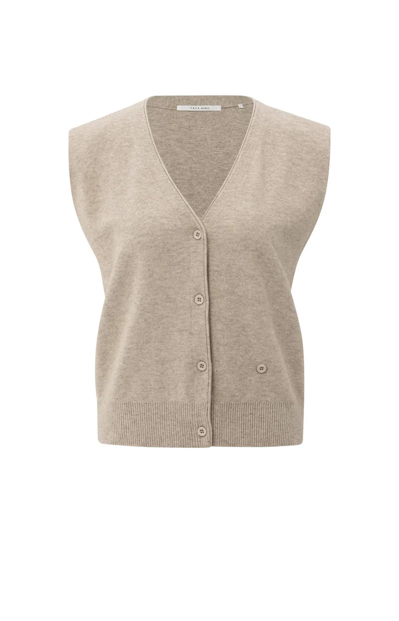 Dit zachte, gebreide gilet is mouwloos en ontworpen met een diepe V-hals en een opvallende asymmetrische knoopsluiting. De normale pasvorm en brede ribboord zorgen voor een moderne, gelaagde uitstraling. Perfect te combineren over een blouse of jurk voor een stijlvolle look.