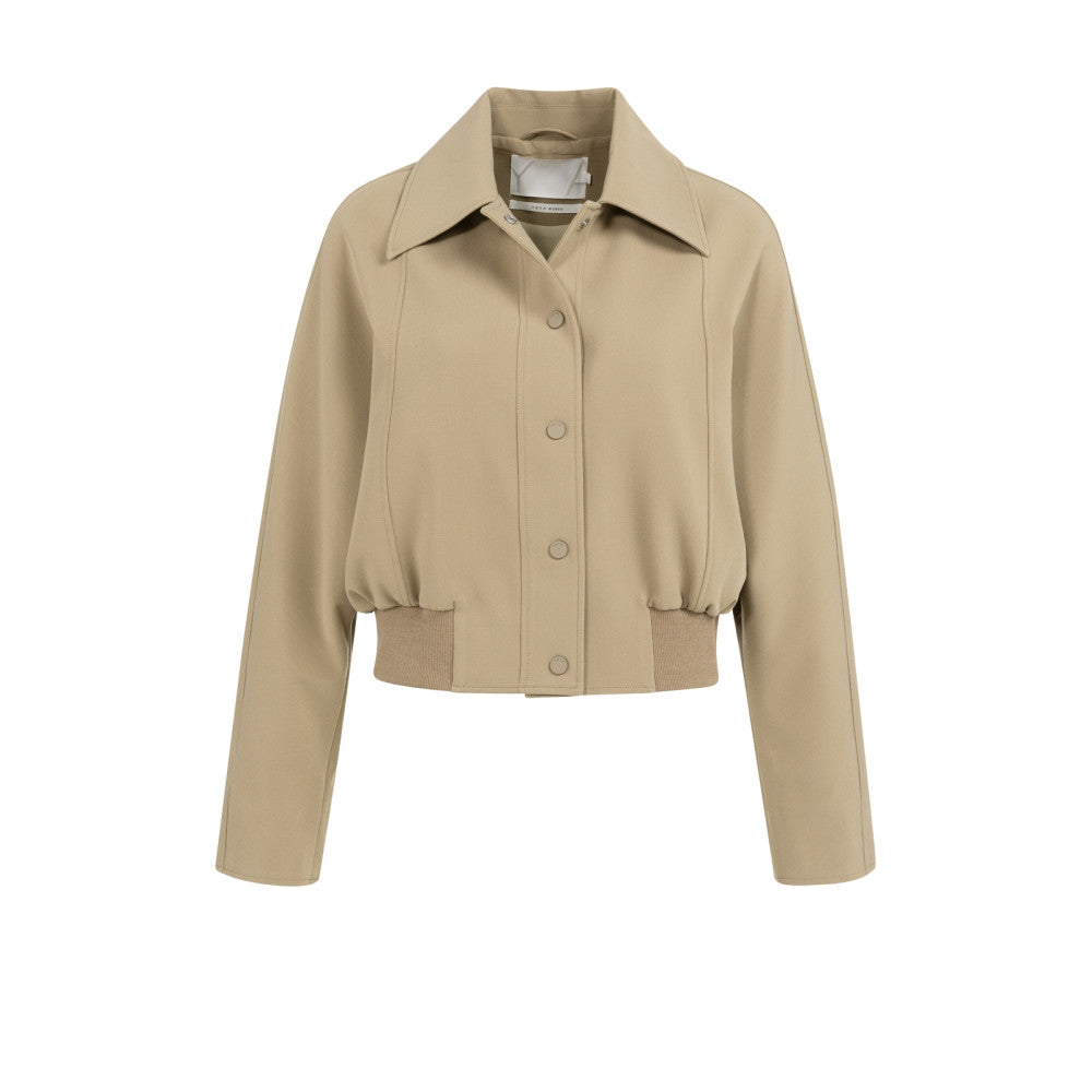Deze korte jas is gemaakt van een gladgeweven stof. Het oversized model heeft lange mouwen, een klassieke kraag en een blinde drukknoopsluiting. De taille is voorzien van een verstelbaar koord aan de achterkant en een elastische ribboord voor een comfortabele fit. Het model is 175 cm en draagt maat 36.