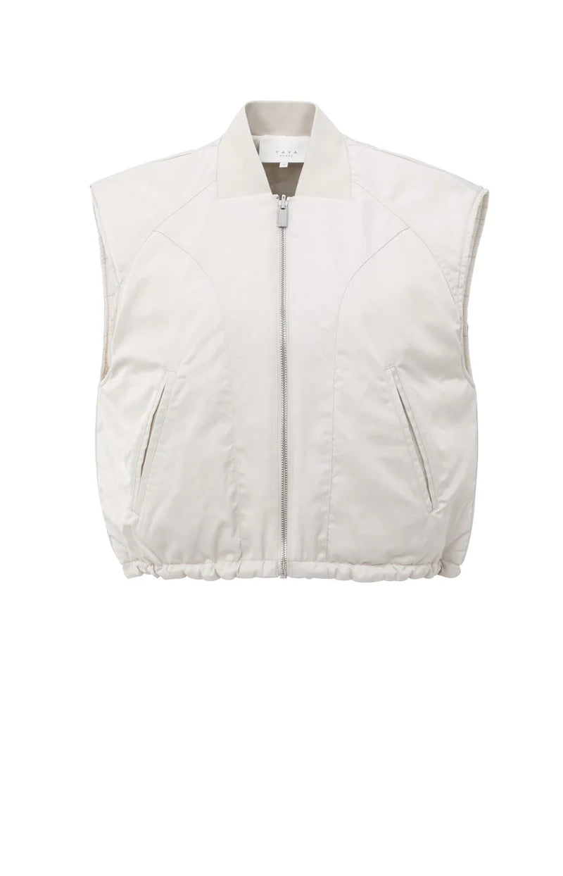 Deze veelzijdige bodywarmer is omkeerbaar en biedt twee stijlvolle looks in één. Ontworpen met gewatteerde voering, een normale pasvorm en ritssluiting. Afgewerkt met een geribde kraag en praktische steekzakken aan beide zijden. De elastische zoom zorgt voor een comfortabele pasvorm. Perfect voor laagjes in het tussenseizoen.