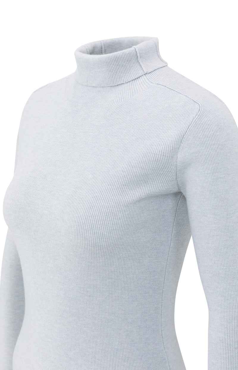 Deze fijne trui is gemaakt van een zachte, ribgebreide jersey en heeft een col en een nauwsluitende pasvorm die mooi aansluit op het lichaam. De lange mouwen en stretchkwaliteit zorgen voor extra comfort. Een veelzijdig basic item dat ideaal is om solo te dragen of als laagje onder een blazer of vest.