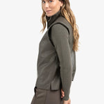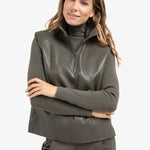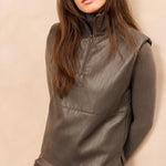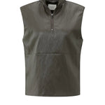 Deze moderne top is gemaakt van soepel imitatieleer en heeft een opstaande kraag met een korte ritssluiting. Het mouwloze ontwerp en de rechte pasvorm zorgen voor een stoere en minimalistische look. Perfect te combineren met een blouse of trui voor een gelaagde stijl.