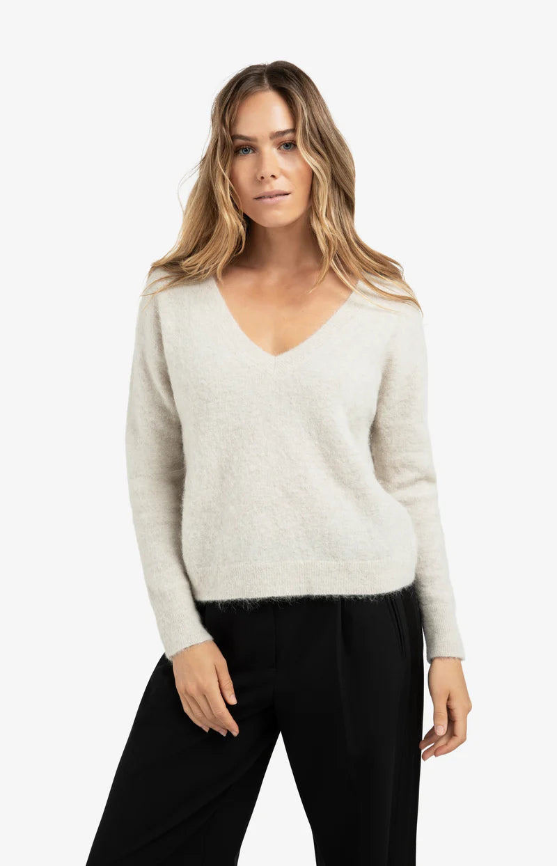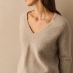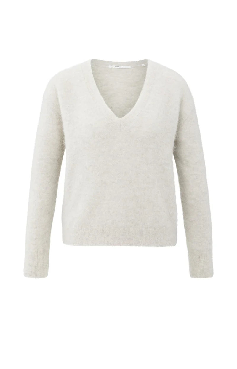 Deze elegante trui is gemaakt van een fijne wolmix met een zachte structuur. Voorzien van een vrouwelijke V-hals, lange mouwen en een rechte pasvorm. De subtiele afwerkingen aan de hals, mouwen en zoom zorgen voor een verfijnde look. Perfect voor een stijlvolle, comfortabele outfit. Het model is 178 cm en draagt maat S.