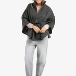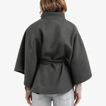 Deze elegante poncho is gemaakt van een zachte, geweven stof en is voorzien van een opstaande kraag en een ceintuur in de taille. De wijde pasvorm zorgt voor een comfortabele en stijlvolle look. Een verfijnd item dat warmte en elegantie combineert. Een stijlvol item voor gelaagde looks. Het model is 178 cm en draagt maat 2.