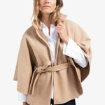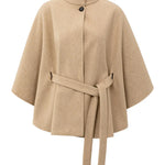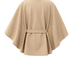 Deze elegante poncho is gemaakt van een zachte, geweven stof en is voorzien van een opstaande kraag en een ceintuur in de taille. De wijde pasvorm zorgt voor een comfortabele en stijlvolle look. Een verfijnd item dat warmte en elegantie combineert. Het model is 178 cm en draagt maat 2.