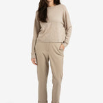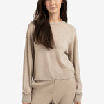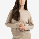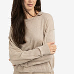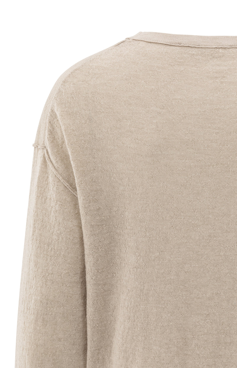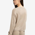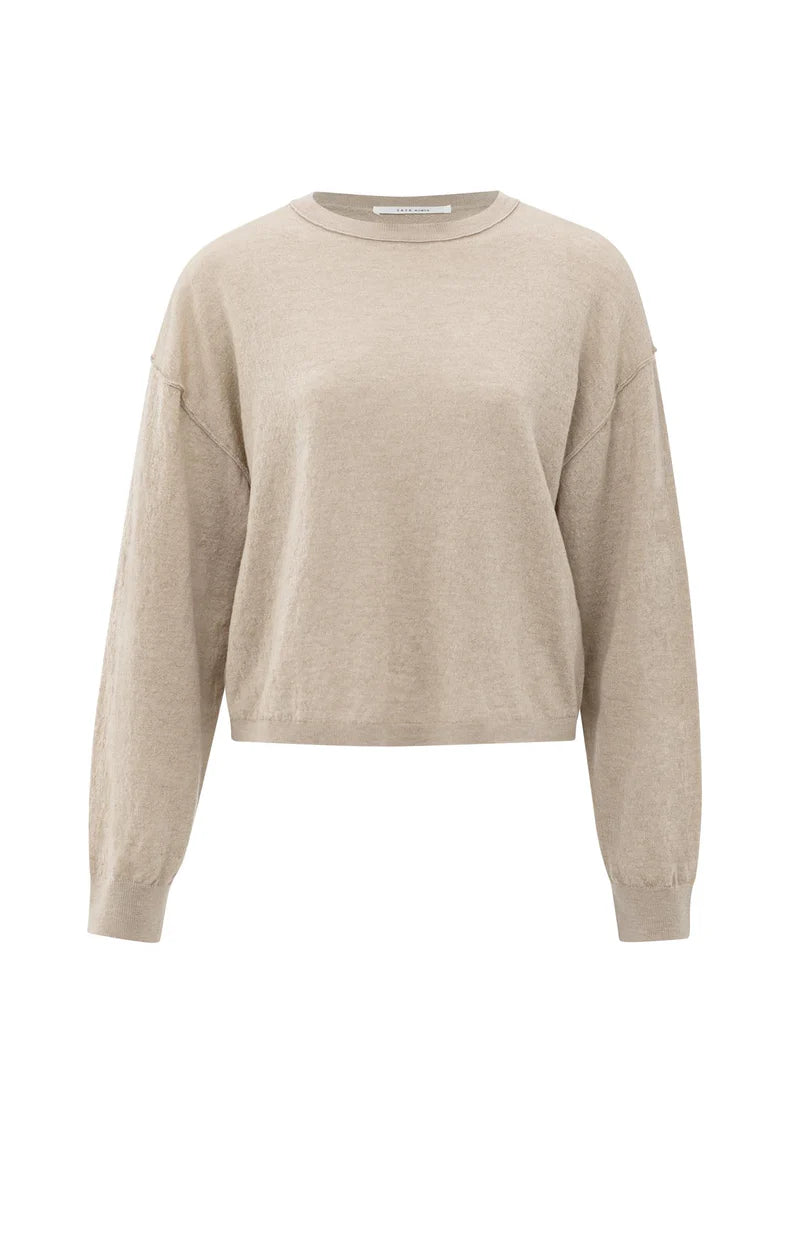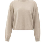 Deze trui is gemaakt van een zachte, licht gemêleerde stof en heeft een ronde hals, een losse pasvorm, verlaagde schoudernaden en lange mouwen met geribde boorden. De subtiele textuur en licht cropped lengte zorgen voor een moderne uitstraling. Een comfortabel en stijlvol item voor een casual look.
