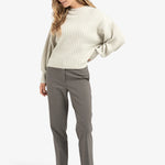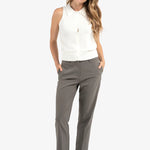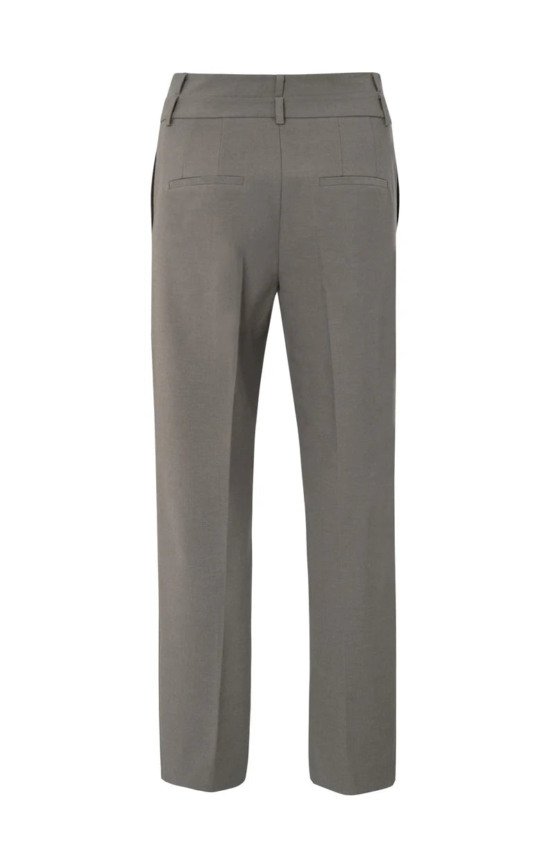 Deze stijlvolle broek is vervaardigd uit een zachte, gestructureerde stof en heeft een hoge taille met een dubbele tailleband voor een modern accent. De rechte pijpen zorgen voor een tijdloze pasvorm en de steekzakken geven extra comfort. Combineer moeiteloos zakelijk en casual.