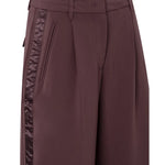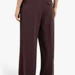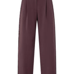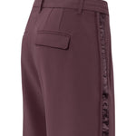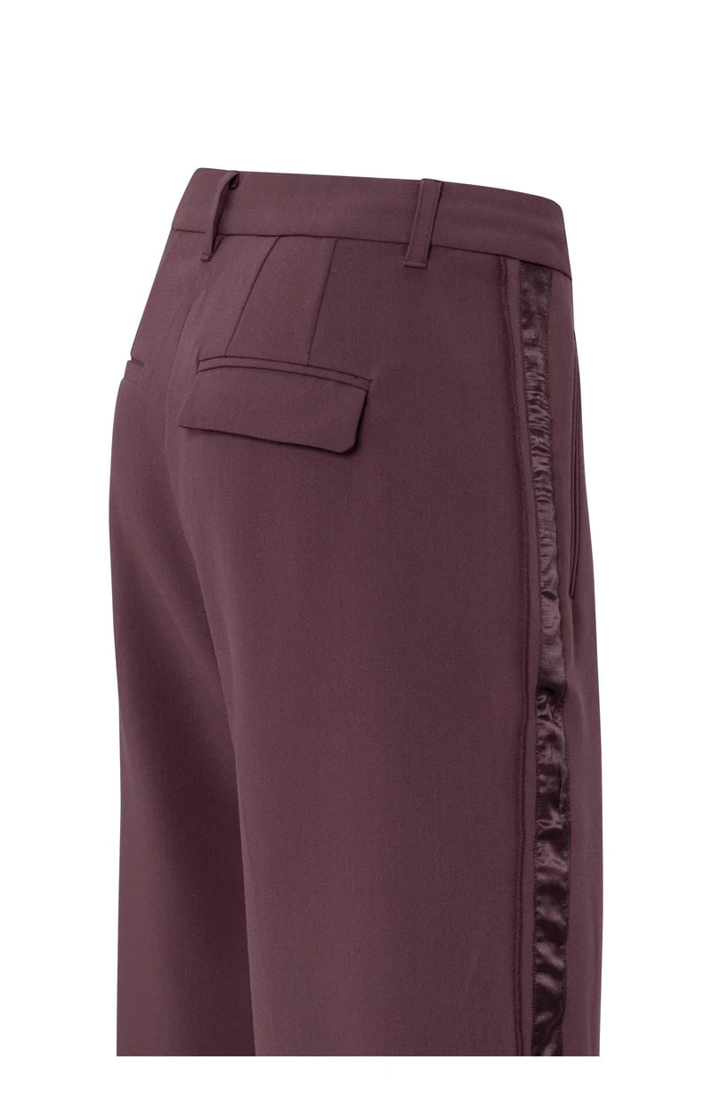 Deze elegante broek is gemaakt van een zachte geweven stof en heeft een hoge taille met plooidetails aan de voorkant. De wijde pijpen zorgen voor een flatterende pasvorm, terwijl de satijnen bies langs de zijkant een chique accent toevoegt. Voorzien van steekzakken, riemlussen en klepzakken achter. Perfect voor een stijlvolle, vrouwelijke look. Het model is 178 cm en draagt maat 36.