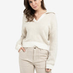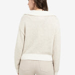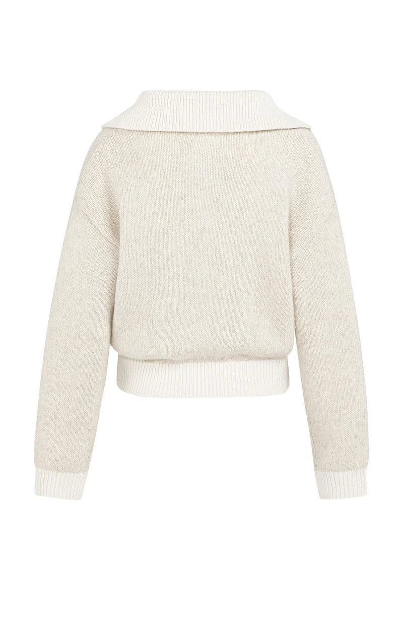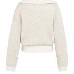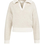 Deze stijlvolle gebreide trui heeft een normale pasvorm, lange mouwen en een open V-hals met een brede kraag. De ribgebreide kraag, zoom en manchetten zijn uitgevoerd in een contrasterende kleur, wat zorgt voor een speels detail. Gemaakt van een zachte en warme stof, perfect voor casual looks met een verfijnde twist. Het model is 178 cm en draagt maat S.