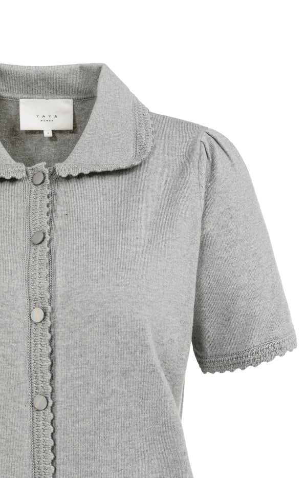 Dit zachte, fijngebreide vest is ontworpen met korte mouwen, een kraag en een knoopsluiting aan de voorzijde. De normale pasvorm en geribde boorden zorgen voor een comfortabele en moderne uitstraling. Gemaakt van een zachte wolmix, perfect als laagje over je favoriete top. Een tijdloos item dat eindeloos te combineren is. Het model is 175 cm en draagt maat S.