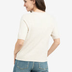 Deze zachte trui is ontworpen met korte raglanmouwen en een ronde hals. Gemaakt van een comfortabele, gebreide stof met een subtiele structuur. De normale pasvorm en ribgebreide boorden zorgen voor een verfijnde en casual look. Perfect voor gelaagde outfits of om solo te dragen op mildere dagen. Het model is 178 cm en draagt maat S.
